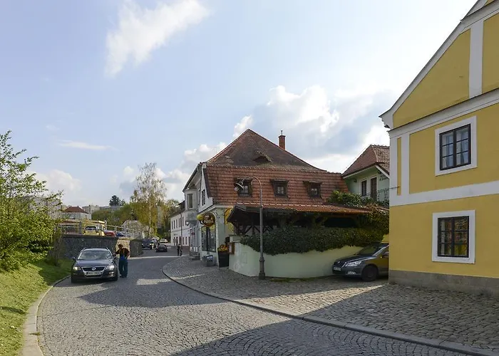 A Penzion Ve Dvorku Český Krumlov vendégei számára hozzáférést kínál a Latrán houses területéhez, amely csak 13 percnyi autóútra található.